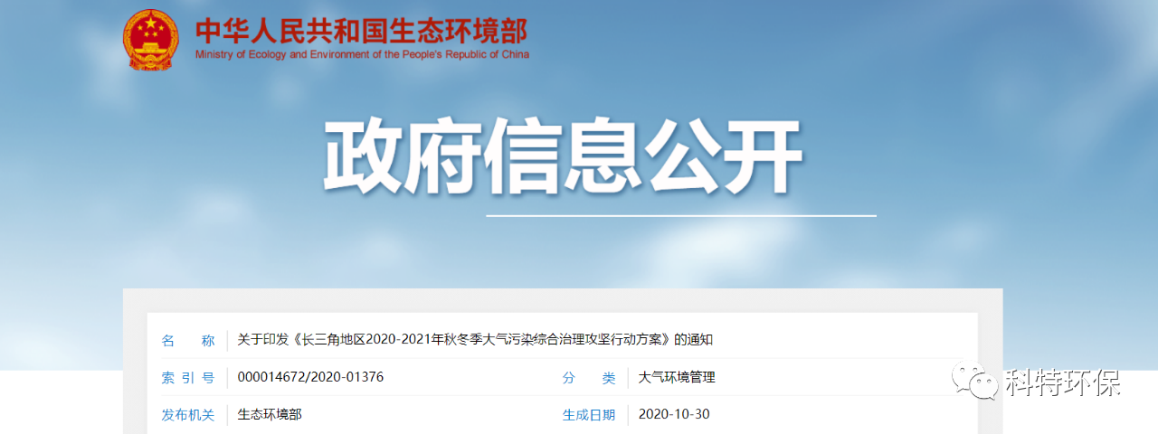 生態(tài)環(huán)境部、國(guó)家發(fā)展和改革委員會(huì)、工業(yè)和信息化部等10部門與上海、江蘇、浙江、安徽等4省(市)人民政府聯(lián)合印發(fā)《長(zhǎng)三角地區(qū)2020-2021年秋冬季大氣污染綜合治理攻堅(jiān)行動(dòng)方案》(以下簡(jiǎn)稱《行動(dòng)方案》)